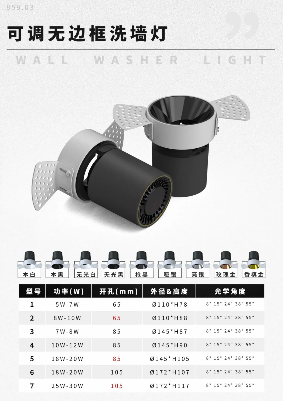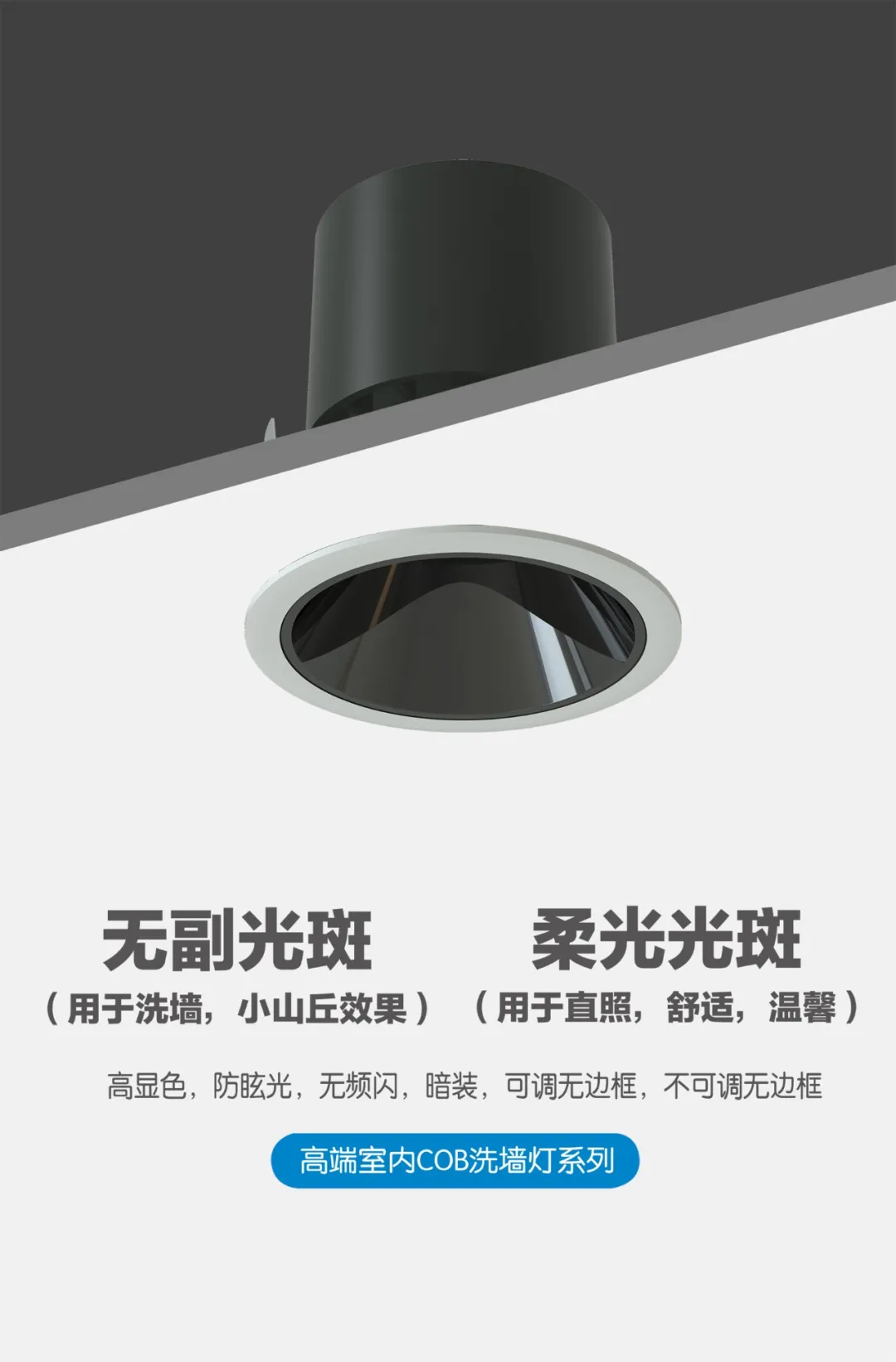 “天花板”系列LED、COB室内洗墙灯,三款可选:可调无边框、不可调无边框、COB洗墙灯