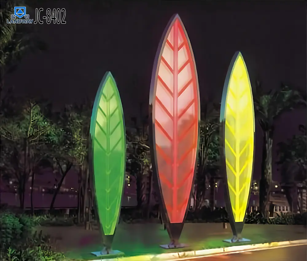 灯体内侧发光部分颜色:红光、蓝光、绿光、黄光、白光及RGB七彩变色(可定制)适用场所:城市广场、高速出口、商业街、旅游区、特色小镇、生态公园等公共场所。