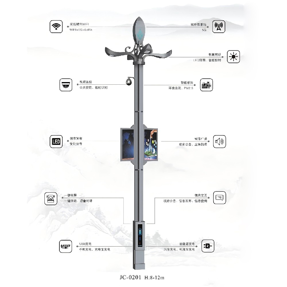 智慧灯杆JC-0102H8-12m