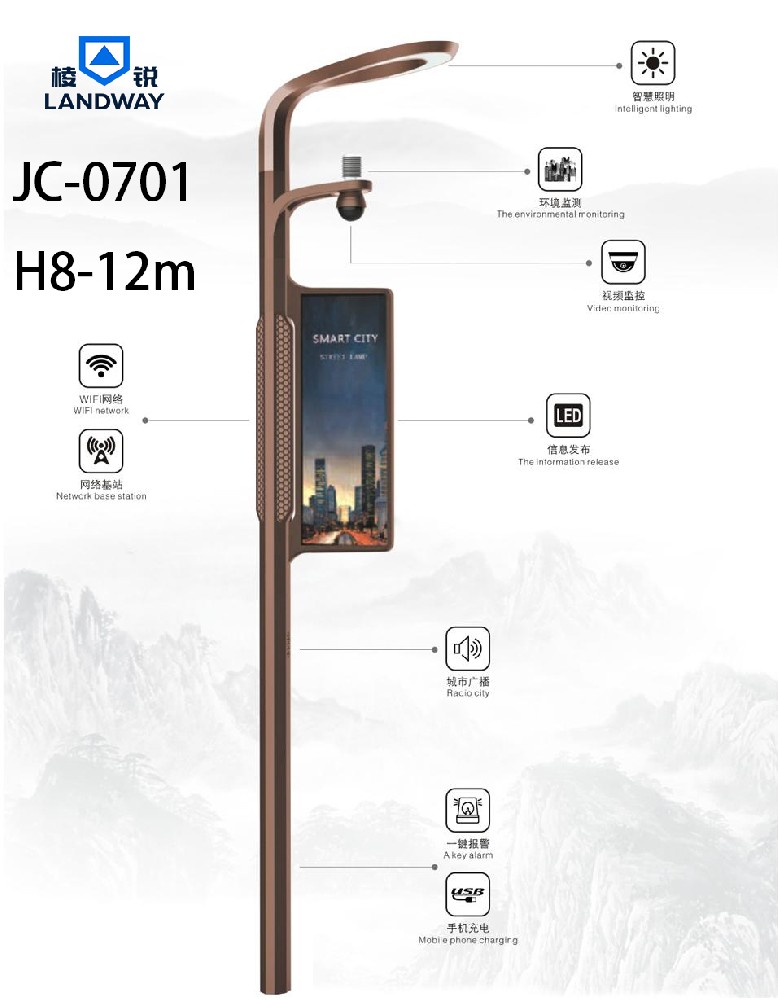 智慧灯杆JC-0701H8-12m