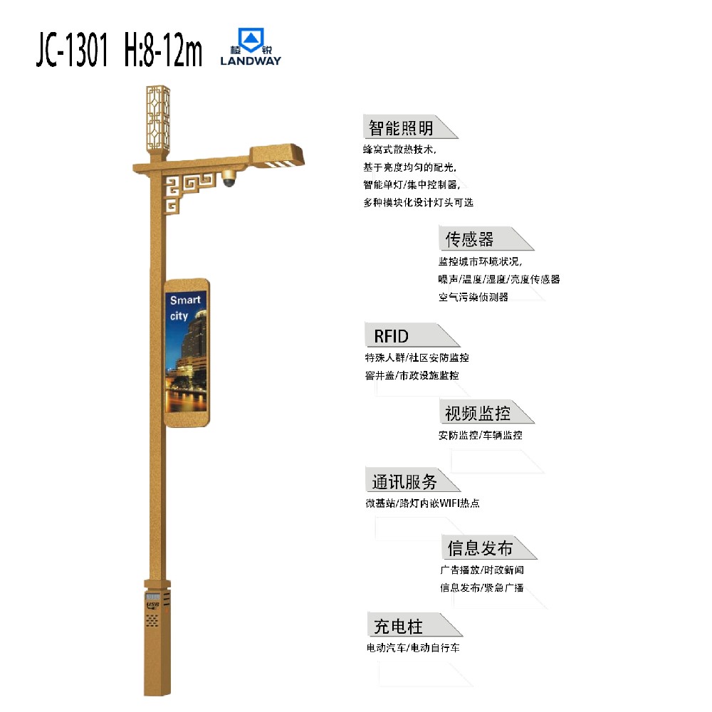 智慧灯杆JC-1301H8-12m