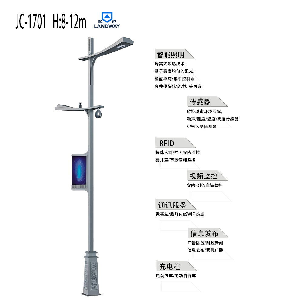Can be integrated into street light monitoring systems and public security surveillance systems, featuring advertising screens, Wi-Fi, and charging sockets