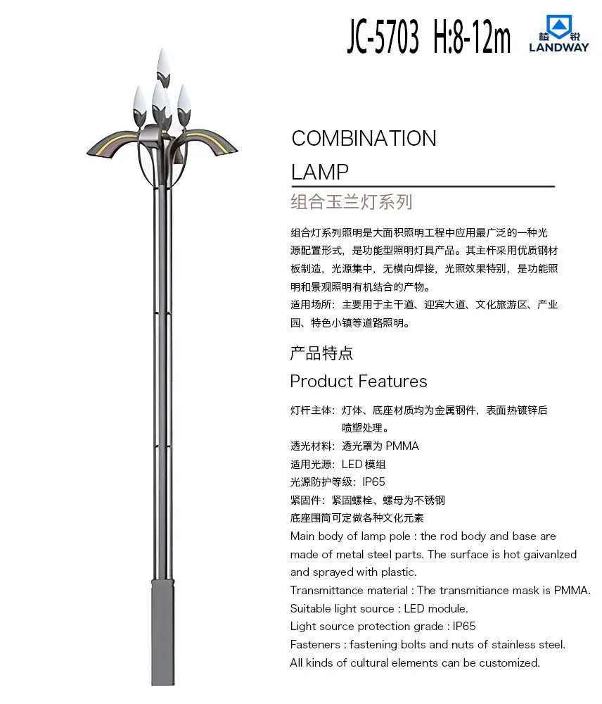 Suitable Applications: Primarily used for road lighting on main thoroughfares, ceremonial boulevards, cultural tourism districts, industrial parks, characteristic towns, etc.